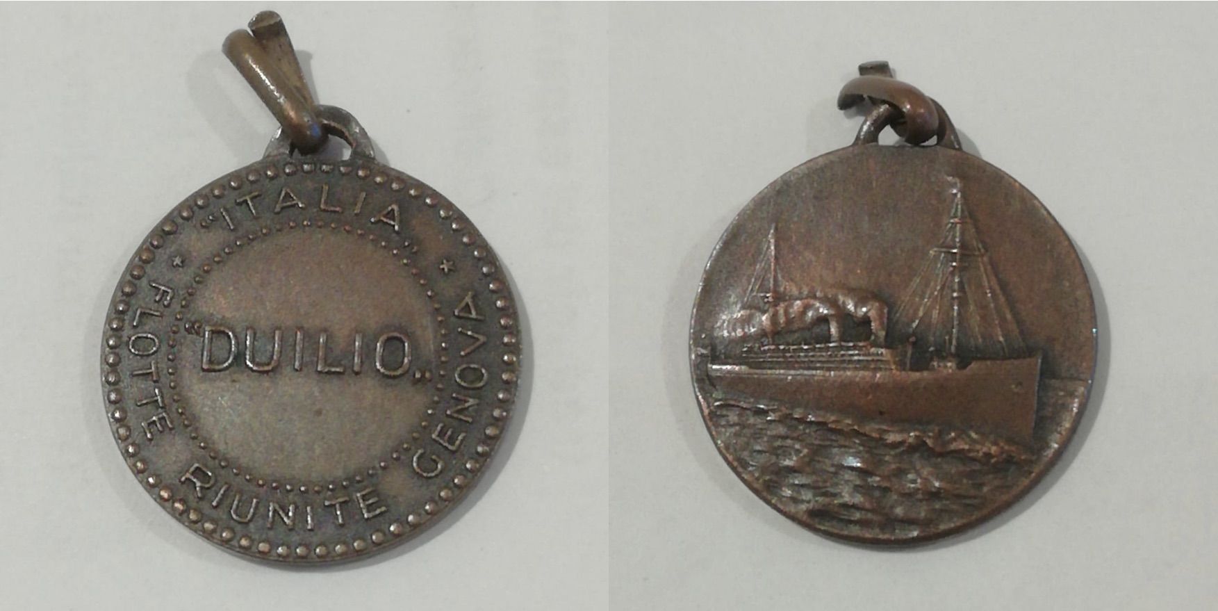 Medaglione commemorativo del transatlantico Duilio, ricordo del viaggio affrontato dai nonni. Il medaglione appartiene alle memorie private della famiglia Vallarella-